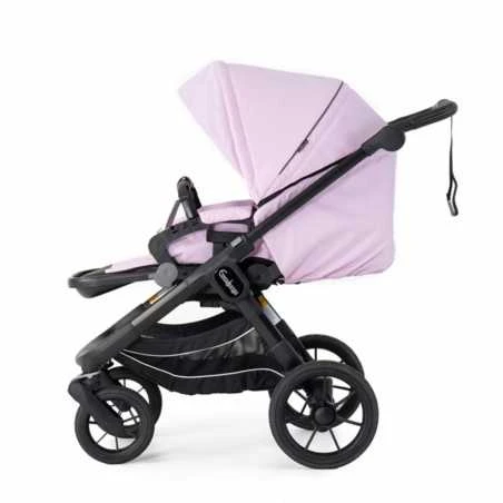 Flat-istuimen selkäpuoli on pehmustettu ja ratasistuimen selkänoja on varustettu ilma-aukoilla taaten hyvän ilmanvaihdon, jolloin istuimessa on mukavaa matkustaa myös pidempiä aikoja. Aurinkokuomussa on kurkistusikkuna, joka toimii myös tuuletukseen kesäkuumilla. Kuomua saa pidennettyä ja se peittää lapsen hyvin, mikä on erityisen tärkeää, kun kurjempi sää iskee. Selkänojaa saa kallistettua 3 eri kohtaan, istuma-asennosta täyteen makuuasentoon, luoden aina hyvän matkustusasennon pikkuisellesi. Istuin on todella tilava, 89 cm pitkä sisäpuolelta makuuasennossa, joten lapsellasi on hyvin kasvuvaraa. Pehmustettuja 5-pistevaljaita, kuten myös haararemmiä, saa säädettyä kasvavan lapsesi koon mukaan. Valjaissa on kätevä magneettisolki, jolloin niiden kiinnitys käy käden käänteessä. Istuimen saa käännettyä niin vanhempiin päin kuin maailmaa katsellen, aina noin 4-vuotiaaksi tai 22 kg painoon saakka.